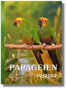 Rettung von Papageien vor dem Hochwasser Jens Rühlig Inhalt: Seit April 1986 betreut der Autor Jens Rühlig eine öffentliche Volierenanlage im Grünefelder Park in Waldenburg, die vorwiegend mit eigenen Tieren besetzt ist. Als er im Rundfunk von der bedrohlichen Hochwassersituation erfuhr, wollte er natürlich bei seinen Vögeln nach dem Rechten sehen; vor Ort angekommen traute er seinen Augen kaum, denn das Wasser stand schon an der Türschwelle der Volieren! In einem Wettlauf gegen die Zeit musste er die 105 Voliereninsassen evakuieren. Haltung und Zucht des Goldscheitelsittichs Géry Dupas Inhalt: Géry Dupas berichtet über seine Erfahrungen bei der Zucht von Goldscheitelsittichen (Aratinga a. auricapilla) und bringt gleichzeitig ein Plädoyer für die Haltung der Südamerikanischen Sittiche vor. Für viele Züchter sind die australischen Sittiche besonders reizvoll, weil sie meist leuchtende Farben haben. Ein Nachteil ist allerdings, dass sie oft ängstlich gegenüber dem Menschen sind. Südamerikanische Sittiche hingegen haben zwar weniger auffällige Farben, dafür aber ein völlig anderes Verhalten gegenüber ihrem Pfleger: Es sind neugierige Vögel, die sich nicht scheuen, sich dem Gitter zu nähern, wenn man vor der Voliere steht. Ihre Rufe sind zwar durchdringend, doch schreien sie selten lang und meist nur morgens bei Sonnenaufgang oder bei Annäherung einer fremden Person. Der Autor kann daher nur jedem Züchter empfehlen, sich mehr den neotropischen Arten zu widmen. Der Schwarzlori Peter Odekerken Inhalt: Peter Odekerken ist schon seit vielen Jahren den wunderschönen Loris verfallen. Über die Schwarzloris (Chalcopsitta atra) schreibt er: "Ich kenne keinen anderen Vogel, der vom Menschen so eingenommen ist und ihm so viel Vertrauen entgegenbringt wie der Schwarzlori. Zwar gibt es auch Vertreter anderer Arten mit diesen Wesenszügen, doch die können schon einmal kräftig zwicken, um zu zeigen, dass man sich bei ihnen nie völlig sicher sein kann. Für Schwarzloris ist so ein Verhalten hingegen sehr unüblich, wenn sie mit ihrem Pfleger vertraut sind. Selbst ein Brutpaar wird sich dann auf seine Schultern setzen, pfeifen und schreien und viel Spaß damit haben, auf ihm umherzuklettern. Die Tiere genießen ganz offensichtlich die Gesellschaft." Haltung und Zucht des Tovisittichs Jörg Asmus Inhalt: Der Tovisittich (Brotogeris jugularis) gehört zu den Schmalschnabelsittichen, einer Gattung mit acht relativ kleinen Spezies. Der deutsche Name Tovisittich leitet sich ab von dem indianischen Wort „túi“, was so viel wie „kleiner Papagei“ bedeutet. Der Vogel besitzt eine laute Stimme, die er häufig hören lässt. Er ist somit nicht unbedingt Menschen mit schwachen Nerven als Hausgenosse zu empfehlen. Allerdings kann er sehr zahm werden und recht gut nachahmen. Da auch noch heutzutage in Menschenobhut verhältnismäßig wenig Bruterfolge zu verzeichnen sind und die Bestände des Tovisittichs sich hauptsächlich aus Wildfängen zusammensetzen, sollte bei uns in Europa möglichst von einer Haltung als Käfigvogel abgesehen werden. Vorrangig muss angestrebt werden, die vorhandenen Vögel zur Fortpflanzung zu bringen, um von Importen unabhängig zu sein. Ulme als Papageiennahrung Detlev Franz Inhalt: Schon seit vielen Jahren ist der Autor Detlev Franz auf den Spuren der frei lebenden Papageien in Deutschland und ihrer Ernährungsgewohnheiten. Diesmal berichtet er über die von vielen Papageien gern gefressenen Ulmen, die schon ab Februar blühen und fruchten. Frei lebende Graupapageien im Kongobecken – Teil 2 Diana May Inhalt: Bei ihren Studien über frei lebende Graupapageien im afrikanischen Kongobecken wurde Diana May leider auch mit dem Problem des legalen und illegalen Fangs der Vögel konfrontiert. Im zweiten Teil ihres Berichtes schildert sie die grausamen Methoden der Jagd auf diese größten afrikanischen Papageien, den rücksichtslosen Umgang mit ihnen durch Fänger und Händler und ihren Leidensweg bis zum Export. Durch die zahlreichen Nachzuchten der Graupapageien in Menschenobhut wären Halter und Züchter in der Europäischen Union nicht auf Importe von Wildfängen angewiesen, und trotzdem kommt es jährlich zur Einfuhr Tausender von wilden Graupapageien. Der Artikel ist deswegen auch gleichzeitig ein Aufruf, den europäischen Importen von Graupapagei-Wildfängen endlich Einhalt zu gebieten. Teil 1 des Artikels finden Sie in PAPAGEIEN 9/2002 Tony Juniper: Spix's Macaw Rosemary Low Inhalt: Der Spixara (Cyanopsitta spixii) ist zum Symbol für das drohende Aussterben geworden, ein tragisches Schicksal, das vermutlich Hunderten von Vogelarten im 21. Jahrhundert bevorsteht. Doch wird wohl keine dieser Arten eine so starke Symbolkraft erreichen wie dieser wunderschöne Ara. Tony Juniper erzählt die Geschichte des Spixaras in seinem Buch Spix's Macaw – The Race to Save the World's Rarest Bird (Deutsch: Spixara – Der Wettlauf um die Erhaltung des seltensten Vogels der Welt). Der Autor ist Naturschützer, Direktor des Vereins „Friends of the Earth“ und Co-Autor des Buches Parrots: A Guide to the Parrots of the World. Er erzählt die Geschichte mit viel Gefühl für die Materie, die er sorgfältig recherchiert hat, und offenbart einige interessante Fakten. Christine Scholtyssek bespricht folgendes Buch: John Bransbury (2000): Where to find birds in Australia. Waymark Publishing Australia. ISBN 0-6463-12677-6. 539 Seiten, Preis $ 35 AU. Im Kleinanzeigenteil der Zeitung haben Abonnenten Gelegenheit, kostenlos ihre Papageien anzubieten, zu tauschen oder zu suchen, bzw. Kontakt mit anderen Papageienfreunden aufzunehmen. In der aktuellen Ausgabe sind über 1000 private Kleinanzeigen veröffentlicht. |