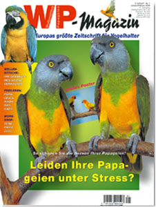 Wenn Papageien unter Stress leiden Hildegard Niemann Inhalt: Mit dem Wort „Stress“ verbinden wir Menschen meist etwas sehr Negatives. Wir denken an Hektik und Chaos, an Gereiztheit und Nervosität, aber selten an den Umstand, dass Stress auch etwas sehr Positives und Befriedigendes sein kann. Dieser „Eustress“ in einer an Umweltreizen reichen Umgebung kommt auch unseren Papageien zugute. Den negativen Stress oder Disstress gilt es hingegen mit allen Mitteln zu vermeiden. Viele Papageien leiden still unter körperlichen oder geistigen Stressoren, die langfristig katastrophale Folgen für die Gesundheit haben. Wir geben Ihnen im Folgenden Tipps zum Umgang mit der krankmachenden Form des Stresses. Im Land der Waldgeister – Madagaskar Karl-Heinz Lambert Inhalt: Auf Madagaskar hat sich aufgrund der seit langer Zeit bestehenden geographischen Isolation eine einzigartige Flora und Fauna entwickeln können, darunter Lemuren und viele endemische Vogelarten. Die Insel weist eine Fläche von 587.000 Quadratkilometern auf und beheimatet unter anderem auch einige sehr interessante Papageien. Verhaltenstraining mit jungen Amazonen Kristina Irzik Inhalt: Junge Amazonen, die für die Heimvogelhaltung gezüchtet wurden, können bereits mit wenigen Monaten spielerisch einfache Kommandos wie das Auf- und Absteigen erlernen, die das spätere Zusammenleben mit dem Halter deutlich erleichtern. Diplom-Biologin Kristina Irzik von der Universität Osnabrück testete die Lernfähigkeit junger Amazonen im Papageienpark Bochum. Hier zeigt Sie wie Mensch und Tier von einem Verhaltenstraining profitieren können. Liebe auf den ersten Blick – und was danach kommt Marlies Reuter Inhalt: Afrikanische Papageien gelten nicht nur als besonders intelligent, sondern ziehen Papageienfreunde auch durch ihre Ausstrahlung unwiderstehlich in ihren Bann. So kam Marlies Reuter aus Witten nicht an einem kleinen Meyers Papagei in einer Zoohandlung vorbei. Obwohl sie beim Kauf nur recht wenig über diese Vogelart wusste, zog „Herr Meyer“ bei ihr ein. Im Folgenden beschreibt die Autorin ihre Erlebnisse mit dem liebenswerten kleinen Meyers Papagei. Der Papageien-Workshop auf Teneriffa Josephine Maier Inhalt: Im Frühjahr 2008 fand auf der beliebten kanarischen Ferieninsel Teneriffa der zehnte Papageien-Workshop statt. Diese Fortbildungsveranstaltung, die vom Arndt-Verlag in Zusammenarbeit mit dem Loro Parque organisiert wird, lockt mittlerweile Papageienfreunde aus ganz Europa an, darunter auch Josephine Meier aus Heroldsberg, die Ihnen ihre Eindrücke schildert. Das Sozialverhalten der Wellensittiche Gaby Schulemann-Maier Inhalt: In Bezug auf Wellensittiche sprechen viele Menschen von „sozialen Vögeln“. Darüber, worin ihr Sozialverhalten im Einzelnen besteht, haben sich die meisten Zeitgenossen aber kaum Gedanken gemacht. Dabei ist es vergleichsweise leicht, mehr über das ausgesprochen facettenreiche Miteinander der Wellensittiche in Menschenobhut zu erfahren. Der Halter kann sich einfach zurücklehnen und entspannt beobachten, sobald er einmal weiß, worauf zu achten ist. Ikarus – die bittersüße Geschichte eines Mohrenkopfpapageis Bernd Kappl Inhalt: Ursprünglich soll er einmal „Felix“ geheißen haben, was wörtlich übersetzt „der Glückliche“ bedeutet. Aber so genau weiß es Bernd Kappl aus Pirk nicht. Laut einem offenen Ring, den seine Familie zusammen mit den recht lückenhaften Papieren des Vogels erhielten, soll er 1991 als deutsche Nachzucht das Licht der europäischen Welt erblickt haben. Aber auch diese Information ist ein wenig rätselhaft, denn der ohnehin offene Ring befand sich ja nicht mal an seinem Füßchen. Lesen Sie hier die Geschichte dieses liebenswerten Papageis. Second-Hand-Wellensittiche Natalie Danke Inhalt: Darüber, sich einen „gebrauchten“ Wellensittich ins Haus zu holen, haben sich früher die wenigsten Vogelhalter Gedanken gemacht. Es war einfach normal, ein junges Tier im Zooladen oder beim Züchter zu kaufen. Oftmals mit dem Hintergedanken, dass nur Jungtiere zahm werden können. Und wo hätte man damals schon einen sogenannten Second-Hand-Wellensittich bekommen, auch wenn man dies vorgehabt hätte? Die Zeiten haben sich geändert. Die Nachfrage nach diesen Vögeln ist gestiegen - zum Glück der Wellensittiche zweiter Wahl. Sonstiges: Eine Weihnachtsgeschichte Sibylle Franke Inhalt: Die erste Jahresausgabe des WP-Magazins erscheint traditionell stets kurz vor Weihnachten. In dieser Zeit ist es ebenfalls eine beliebte Tradition, im Kreise der Familie Weihnachtsgeschichten zu erzählen. Auch Gourmet Paule möchte sich dieser Tradition nicht entziehen und erzählt den großen und kleinen WP-Lesern, wie sein Urgroßvater zum Weihnachtsmann kam.