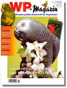 Sauberkeit muss sein! - Hygiene bei der Papageienhaltung Heike Kalbus Inhalt: Haben Sie auch schon einmal Volieren gesehen, in denen sich der Schmutz 10 cm hoch türmt, die Wassernäpfe innen aufgrund nie stattfindender Reinigungsarbeiten grün-schwarz belegt sind und wo einem große Fliegenschwärme aus den hinteren, düsteren Bereichen entgegenkommen? Kein Horrorszenario, sondern durchaus Realität in so mancher Voliere. Dass es weder in Frei- noch in Zimmervolleren so weit kommen darf, liegt auf der Hand. Wir sagen Ihnen, welche Arbeiten erforderlich sind, damit ein derartiger Zustand gar nicht erst eintritt, und zeigen Ihnen, dass es schon mit sehr einfachen Mitteln geht! Der Goldstirnsittich Inhalt: Der Goldstirnsittich (Aratinga aurea) gehört zu den kleinsten Vertretern der artenreichen Gattung der Keilschwanzsittiche. Ausgewachsene Exemplare erkennt man an den Schnabelhälften, die im Gegensatz zu denen der sehr ähnlichen Elfenbeinsittiche (Aratinga canicularis) beide schwarz gefärbt sind. Sie kommen unter anderem in Zentral-Brasilien, wo sie ihren Verbreitungsschwerpunkt haben, noch relativ häufig vor, so dass die Vögel mancherorts sogar als Ernteschädlinge gelten. Weiteres zu diesem schönen Sittich lesen Sie in diesem Steckbrief. Eine Reise ins Land der "Choroy" Tony Pittman Inhalt: „Gorgeous Gussy“ war ein mickriges, keuchend atmendes Wesen, als er im Juli 1987 zu uns kam. Wir glaubten nicht, dass er uns lange erhalten bleiben würde, doch tatsächlich lebte er bis Oktober 2002, mehr als 15 Jahre. Zusammen mit einigen Artgenossen bewohnte er eine geräumige Voliere, an die sich ein kleines Schutzhaus anschloss. Gussy war ein Langschnabelsittich, eine höchst ungewöhnliche Papageienart aus Südamerika. Tony Pittman hatte zwei Jahre nach dem Tod seines Vogels die Gelegenheit, die wild lebenden Verwandten in Chile, wo die Art als „Choroy“ bezeichnet wird, zu beobachten. Der Katharinasittich - das unbekannte Wesen (Teil 3) Sigrid Groß-Hardt Inhalt: In den beiden letzten Ausgaben des WP-Magazin berichtete Sigrid Groß-Hardt aus Osnabrück ausführlich über die Haltung, Pflege und Unterbringung sowie das Verhalten von Katharinasittichen in Menschenobhut. Im abschließenden dritten Teil ihres Berichtes geht die Autorin auf ihren eigenen kleinen Schwarm ein. Dazu der WP-Magazin-Internet-Tipp zum Thema Katharinasittiche. Papageienkauf - welcher Papagei passt zu mir Hildegard Niemann Inhalt: Bei so manchem Wellensittichhaltern mag irgendwann auch einmal der Wunsch nach etwas größerem, einem "richtigen" Papagei aufkommen. Dass es dabei viele Faktoren zu bedenken gibt, wissen hingegen nicht all zu viele. Rostkappenpapageien (Pionites leucogaster) erfreuen sich z.B. großer Beliebtheit unter den Papageienfreunden, werden aber aufgrund ihres ausgeprägten Nagetriebs und der mitunter beeindruckend lauten Stimme nur selten im Wohnbereich gehalten. Anspruchsvolle Arten wie Salomonenkakadus (Cacatua ducorpsii) sollten bei Anfängern in der Papageienhaltung nicht oben auf der Wunschliste stehen. Hier fragt ein älterer Herr in seinem Leserbrief, wie er in die Papageienhaltung einsteigen kann. Lesen Sie dazu die Antwort der Fachfrau Hildegard Niemann. "Bonding" - der Weg zu einer guten Partnerschaft Hildegard Niemann Inhalt: Der Kauf eines Papageis verändert das Leben seines Halters und seiner Familie in erheblichem Maße. Der Halter wird zum Mittelpunkt im Leben dieses charismatischen und temperamentvollen Vogels. Um jedoch langfristig ein friedvolles und entspanntes Zusammenleben zu gewährleisten, sollten gleich von Beginn an bestimmte Regeln befolgt und Voraussetzungen erfüllt werden. Wir nennen Ihnen die zehn wichtigsten Regeln für eine dauerhaft funktionierende Vogel-Halter-Beziehung. Die Aufzucht von Sonnensittichen Inhalt: Unser Leser Markus Kaufmann aus Waldeck erinnerte sich, dass ihm vor Jahren ein Bekannter von Sonnensittichen (Aratinga solstitialis) vorgeschwärmt hatte. „Die will ich unbedingt haben!“ Er strahlte über beide Wangen und zeigte dabei auf ein Foto in einem kleinen Papageienbuch, das er für wenige Euro in einem Buchladen erstanden hatte. „Oh, Sonnensittiche!“ war damals Markus Kaufmanns knapper Kommentar, und als er merkte, dass er die Euphorie seines Bekannten mit seiner Reaktion zu bremsen drohte, fügte er schnell hinzu: „Ja, die sehen einfach klasse aus!“ Zu diesem Zeitpunkt hätte er nicht gedacht, bald selbst Halter und Züchter dieser Papageienart zu sein. Lesen Sie hier, wie er zu diesen wunderschön gefärbten Sittichen kam und sie nachgezüchtet hat. Spix-Ara geschlüpft Matthias Reinschmidt Inhalt: Zum Bestand der Loro Parque Fundación auf Teneriffa zählt seit einigen Jahren auch ein Paar Spix-Aras (Cyanopsitta spixii), das der Stiftung mit der weltgrößten Papageienkollektion von der brasilianischen Regierung zu Zuchtzwecken zur Verfügung gestellt worden war. Zu einem Brutversuch kam es aber leider nie. Der Kurator des Loro Parque erzählt Ihnen persönlich, wie es dann doch noch mit dem langersehnten Nachwuchs geklappt hat und wie dieser aufgezogen wurde. Medizinische Ursachen des Federrupfens Berit Bräuer Inhalt: Jede Form von Schmerz, Verletzungen, allgemeinen Infektionen (beispielsweise mit Circoviren oder Chlamydien), angeborenen Federdeformationen, Legenot oder Entzündungen kann bei Papageien das Federrupfen auslösen. Auf jeden Fall sollte immer eine gründliche medizinische Untersuchung vorab erfolgen. Blut- und Kotuntersuchungen, Röntgen- und Ultraschallaufnahmen sowie Biopsien stehen ebenso wie bei anderen Haustieren zur Verfügung. Nachdem Tierärztin Berit Bräuer aus Hannover in den letzten beiden Ausgabe des WP-Magazin über die haltungsbedingten Ursachen des Federrupfens berichtet hat, widmet sie sich nun den medizinisch relevanten Auslösern zu. Meine drei ersten Jahre mit Jakob Pia Senz Inhalt: Vor drei Jahren entschied sich Pia Senz aus Berlin in einem Zoogeschäft zu einem Spontankauf: Ein wild gef
